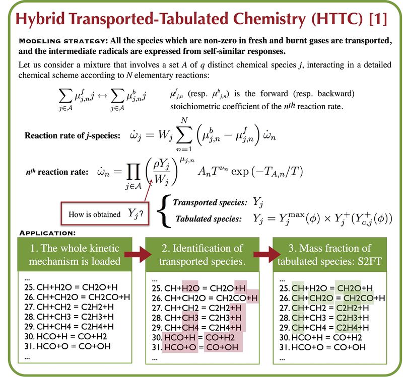 - G. Ribert, L. Vervisch, P. Domingo, Y.-S. Niu (2014) Hybrid transported-tabulated strategy to downsize detailed chemistry for numerical simulation of flames, Flow Turbul. Combust. (92): 175 - 200. DOI 10.1007/s10494-013-9520-6 link.